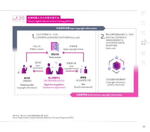 1. 文化內容授權平台(前端) 2. 數位版權存證與認證平台(後端) 第二章