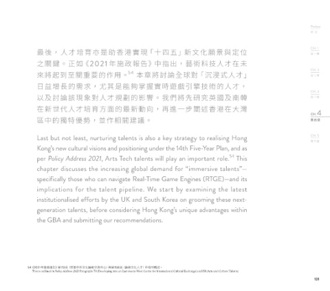 之關鍵。正如《2021 年施政報告》中指出,藝術科技人才在未