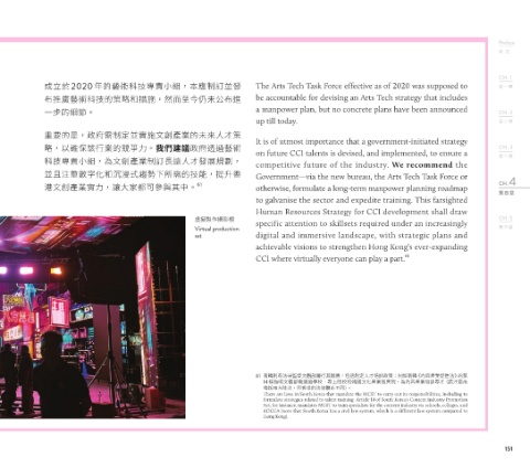 並且注重數字化和沉浸式趨勢下所需的技能,提升香 Government—via the new bureau, the Arts Tech Task Force or CH. 4