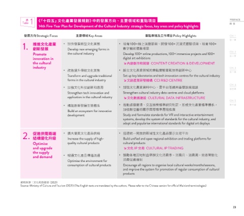 Table 1 《「十四五」文化產業發展規劃》中的發展方向、主要領域和重點項目 PREFACE