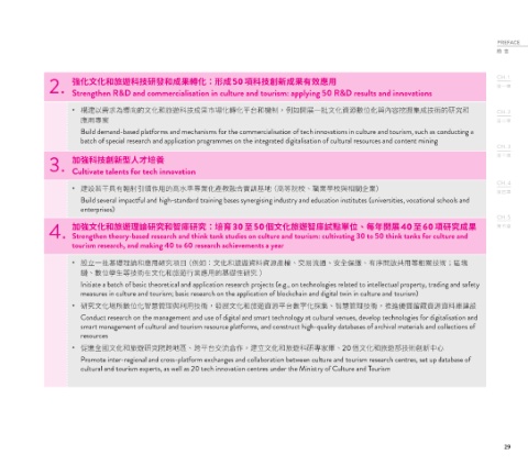 • 構建以需求為導向的文化和旅遊科技成果市場化轉化平台和機制,例如開展一批文化資源數位化與內容挖掘集成技術的研究和 CH. 2