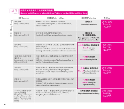 Overview and differences of selected Cultural Policies in mainland China and Hong Kong