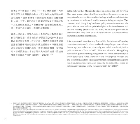 dedicated funding, (iii) infrastructural support, and (iv) measures on capacity building. A few months later in Policy Address 2020, the Chief Executive announced Arts Tech as a new key direction for the CCI. Her new policies