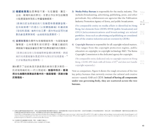 護制度、公共教育 和技術研發。隸屬文觀部的 4) Copyright Bureau is responsible for all copyright-related matters. 第三章