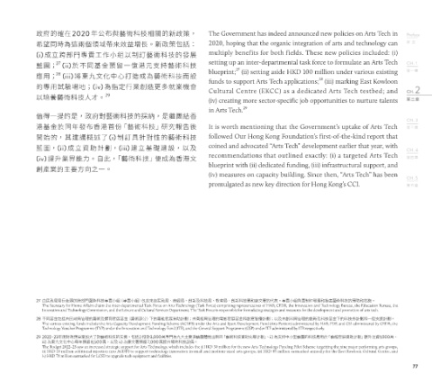 政府的確在 2020 年公布與藝術科技相關的新政策, The Government has indeed announced new policies on Arts Tech in Preface
