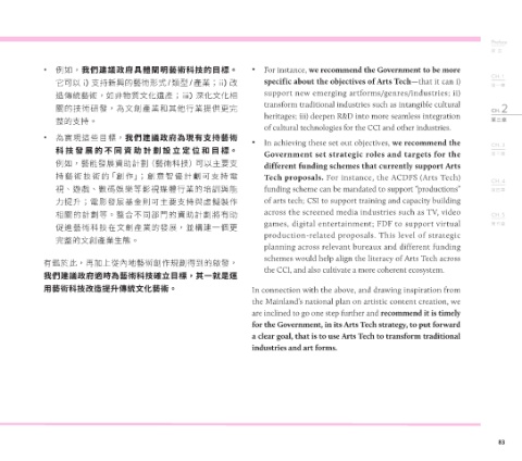 • 例如,我們建議政府具體闡明藝術科技的目標。 • For instance, we recommend the Government to be more