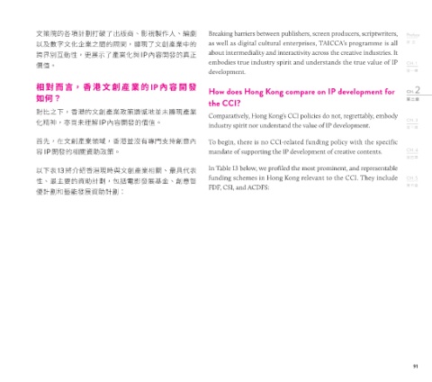 容 IP 開發的相關資助政策。 mandate of supporting the IP development of creative contents. CH. 4