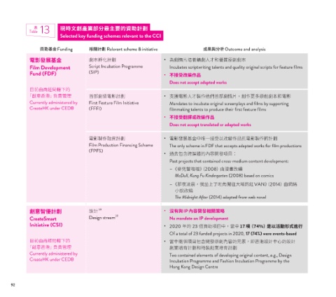 Table 13 現時文創產業部分最主要的資助計劃