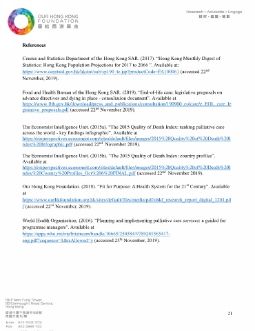 Our Hong Kong Foundation. (2018). “Fit for Purpose: A Health System for the 21 Century”. Available
