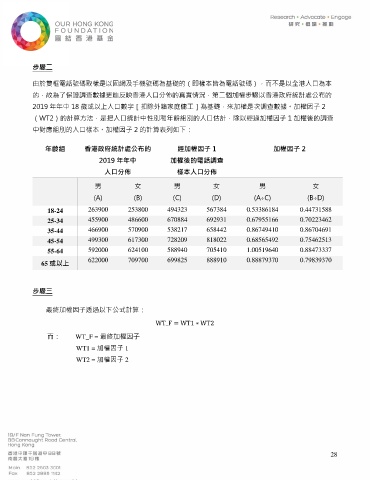 的,故為了保證調查數據更能反映香港人口分佈的真實情況,第二個加權步驟以香港政府統計處公布的