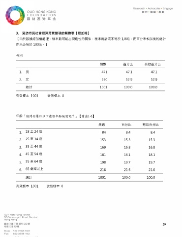 3. 受訪市民社會經濟背景變項的頻數表【經加權】