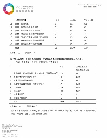* 該百分比是答案數目(即頻數)除以有效樣本人數(即 1001 人)得出的。此外,由於容許受訪者給予