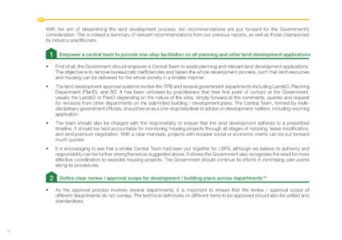 With the aim of streamlining the land development process, ten recommendations are put forward for the Government’s