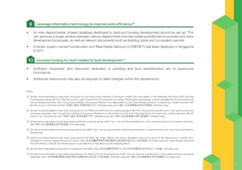 [6] Similar recommendations have been proposed by the HKIS. See〈香港測量師學會就 18 項土地供應選項向政府提出七大建議〉(Chinese only).