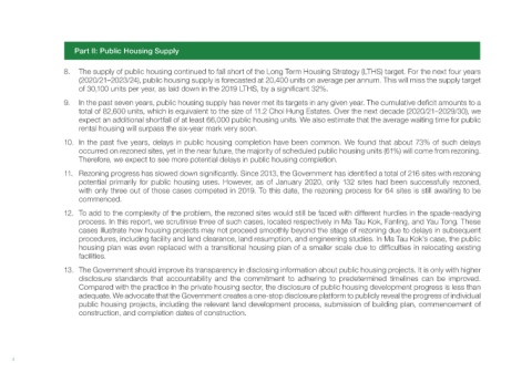 8. The supply of public housing continued to fall short of the Long Term Housing Strategy (LTHS) target. For the next four years