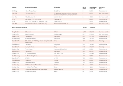 Kowloon City 1-3 San Lau Street & 2 Shek Tong Street Greater Hero Ltd. 51 19,000 Redevelopment