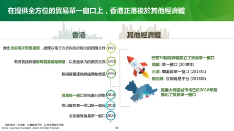 在提供全方位的貿易單一窗口上,香港正落後於其他經濟體