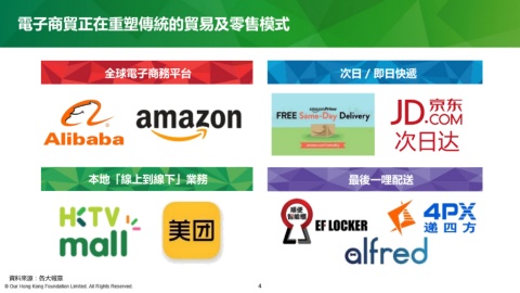 電子商貿正在重塑傳統的貿易及零售模式 全球電子商務平台 次日 / 即日快遞 次日达 本地「線上到線下」業務 最後一哩配送 資料來源:各大報章 4