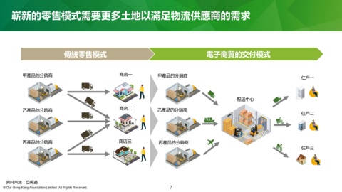 嶄新的零售模式需要更多土地以滿足物流供應商的需求 傳統零售模式 電子商貿的交付模式 甲產品的分銷商 商店一 甲產品的分銷商 住戶一 配送中心 乙產品的分銷商 商店二 乙產品的分銷商 住戶二 丙產品的分銷商 商店三 丙產品的分銷商 住戶三 資料來源:亞馬遜 7