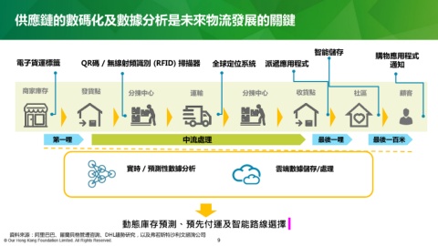 供應鏈的數碼化及數據分析是未來物流發展的關鍵 智能儲存 購物應用程式 電子貨運標籤 QR碼 / 無線射頻識別 (RFID) 掃描器 全球定位系統 派遞應用程式 通知 商家庫存 發貨點 分揀中心 運輸 分揀中心 收貨點 社區 顧客 第一哩 中流處理 最後一哩 最後一百米 實時 / 預測性數據分析 雲端數據儲存/處理 動態庫存預測、預先付運及智能路線選擇 資料來源:阿里巴巴、羅蘭貝格管理咨詢、DHL趨勢研究,以及弗若斯特沙利文諮詢公司 9